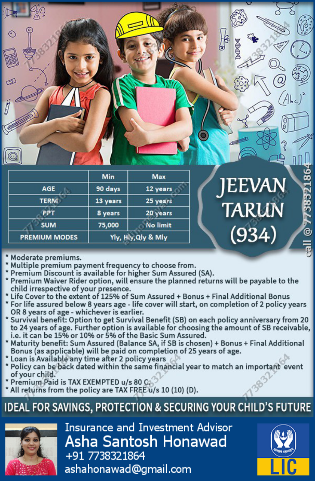 Jeevan Tarun plan has been specially designed to meet the career needs of your child