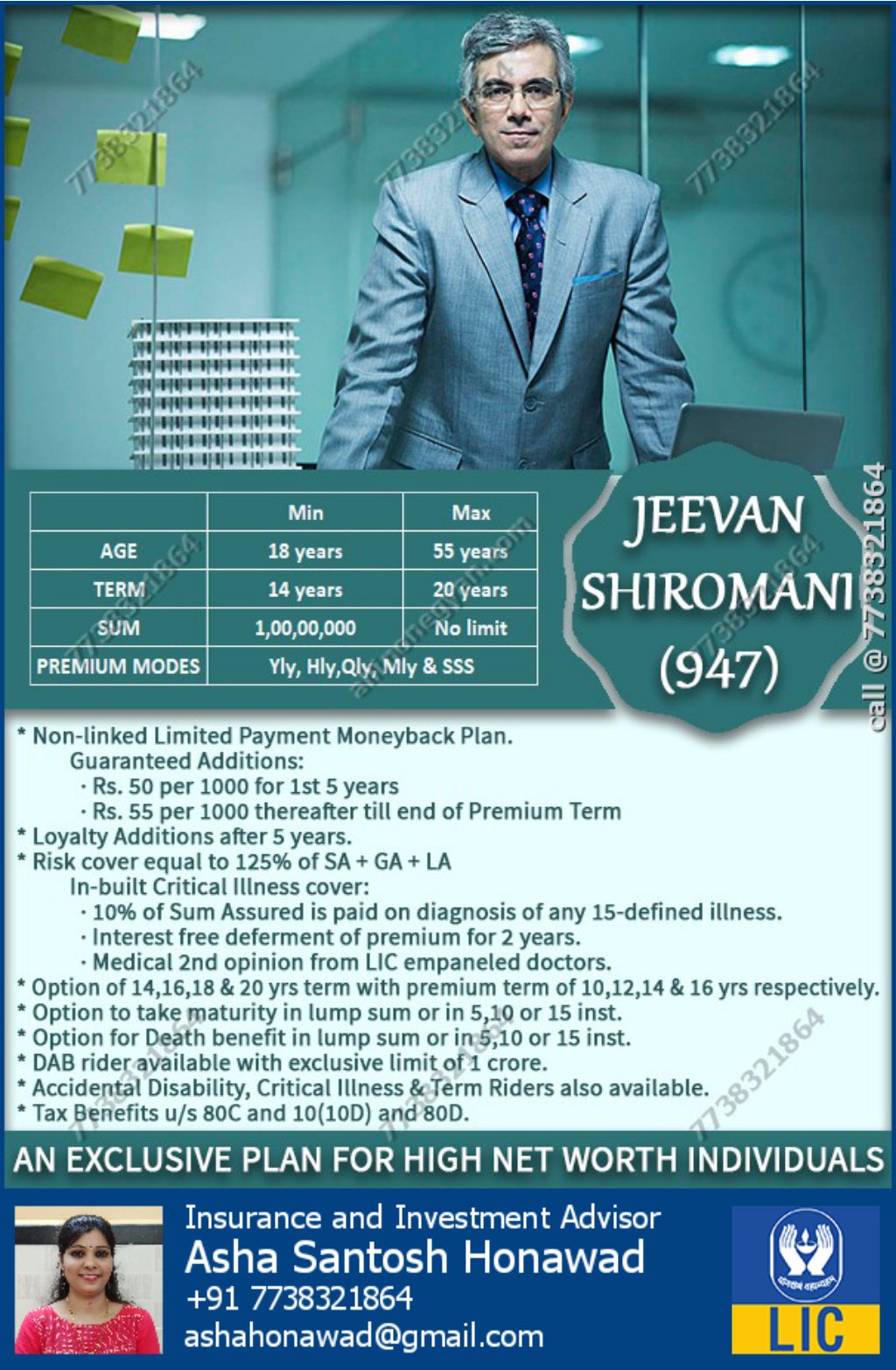 This is the ideal plan for savings & Retirement Planning. It provides the guaranteed tax-free Income of 8% of Sum Assured for life time.