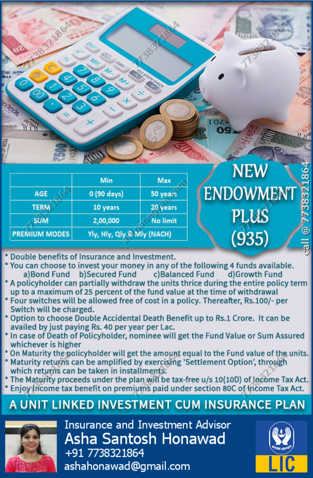 The New Endowment Plus plan is a market linked plan which has the combination of protection & investments